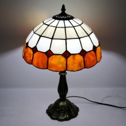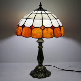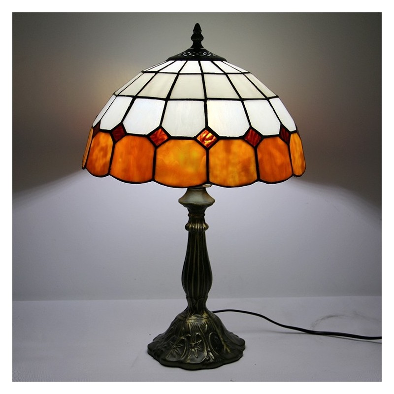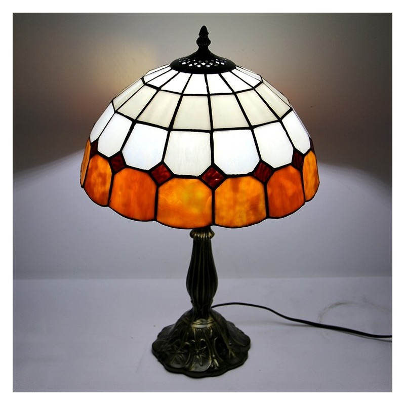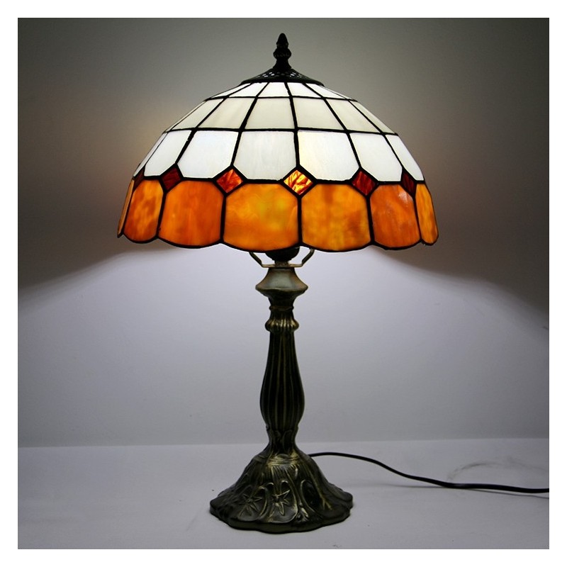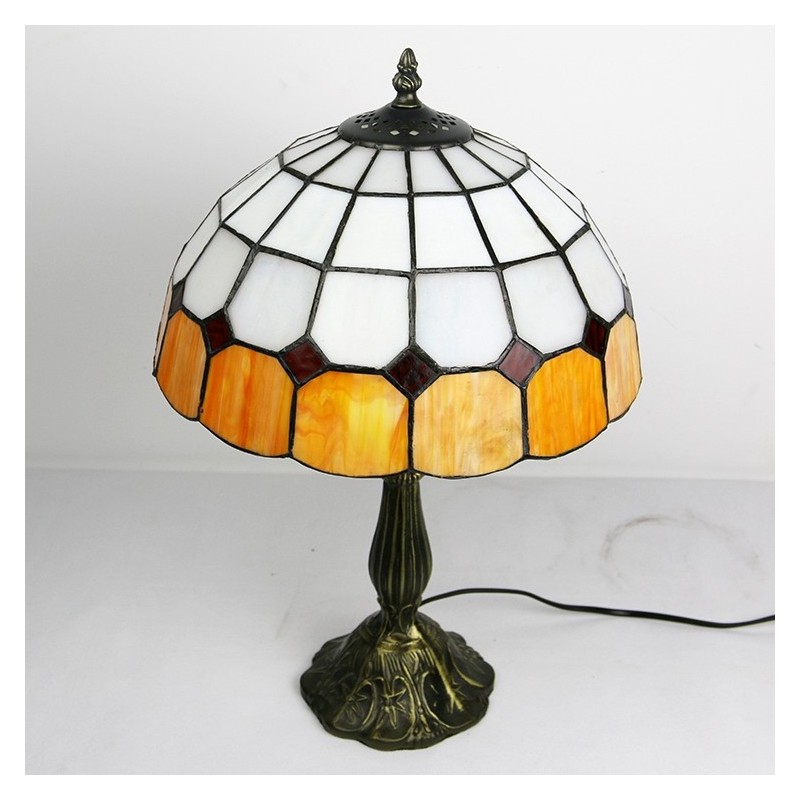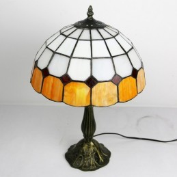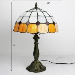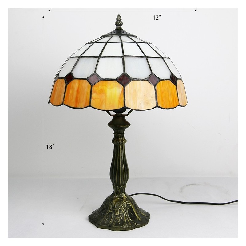 12 tums Tiffany-lampa Målat glas Sängbordslampa Antik inredningsstil läsbordslampa 18" hög